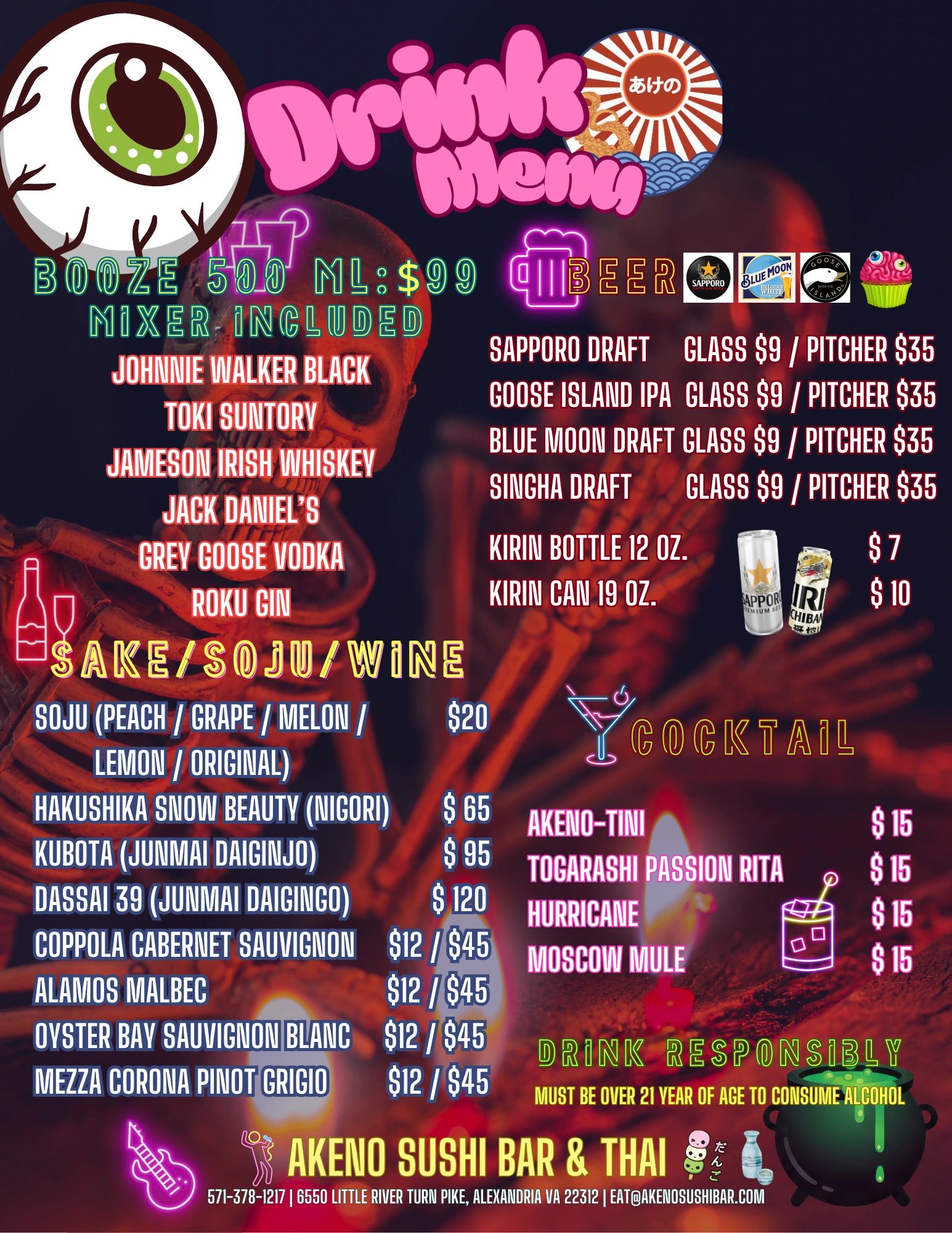 (must be over 21 years of age to consume alcohol)